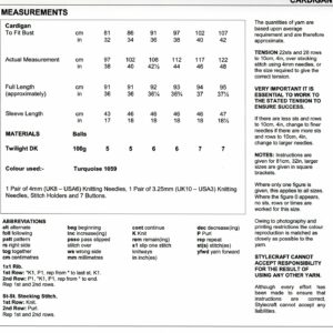 Stylecraft Knitting Pattern – Twilight DK Yarn – LADIES CARDIGAN – 8675